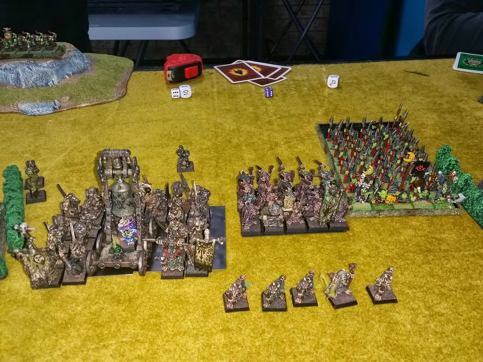 The two night goblin units fled off the table, abandoning the skaven, giant and squigs to their fate and potentially ending the alliance. It would take a whole lot of cheese to fix this, lads...