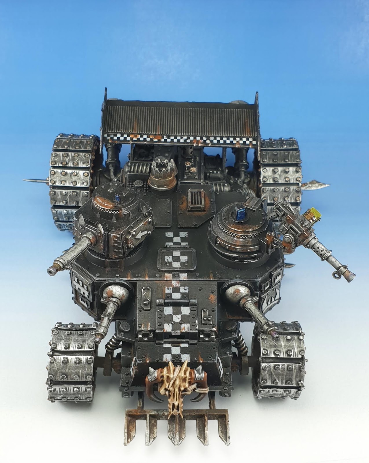 One last touch was the big skull on the front, a nod to conversions like the one in the old pic up there, but also to the original owner of this particular battlewagon, who also stuck a skull on the front of his, albeit a smaller and less inspiring one.